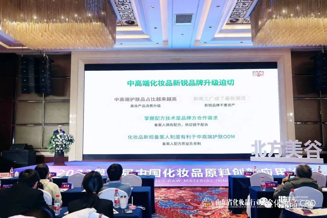 11月29-30日由山东省化妆品行业协会主办的第二届化妆品原料创新应用论坛在泉城济南舜和国际酒店召开,来自多所大学的专家教授和化妆品行业专家齐聚一堂,纷纷带来国内化妆品研发应用最新技术成果。 广州麻尚会化妆品CRO平台首席战略技术官陈来成应邀参会并做了《新锐品牌痛点与化妆品科研创新创新CRO新思路》主题分享。 分享中,陈来成从化妆品新锐品牌痛点分析、科研创新乱象、科研市场需求谈起,提出用化妆品CRO解决新锐品牌科研创新新思路,通过CRO平台的精准研发,快速出成果和研发0风险为新锐品牌构建知识产权护城河,赋能新锐品牌核心技术创新! 化妆品CRO做的不是配方,是化妆品科研创新的整体解决方案!作为化妆品CRO科普活动走进济南,本次分享深受与会的化妆品同行热烈欢迎! END 编辑 邹洁