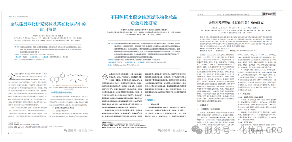 [3]叶童妹,陈来成,刘晓纯,等.不同种植来源金线莲提取物化妆品功效对比研究[J].日用化学品科学,2025,48(03):55-59.