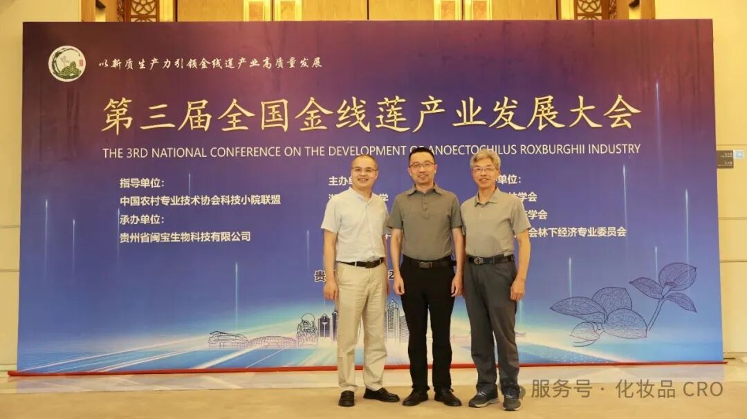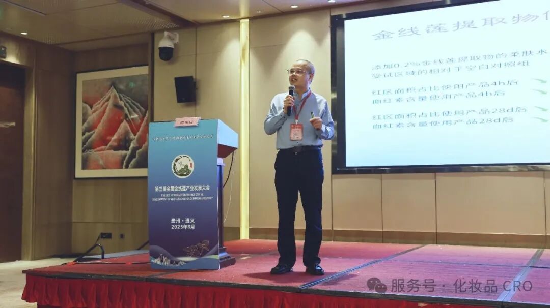 作为本届产业大会金线莲“可妆”概念唯一代表,来自化妆品CRO创始人陈来成应邀参加本届金线莲产业发展大会,并为与会金线莲专家和代表做了《“妆养一体”下的金线莲化妆品创新开发思路》的报告。分享中,陈总以金线莲提取物新原料创新研发为案例,介绍了金线莲新原料科研创新与成果转化落地、金线莲化妆品品牌孵化和产品开发思路,通过已发表的四篇金线莲化妆品应用学术文章发布,为金线莲化妆品概念在化妆品行业大面积科普推广!