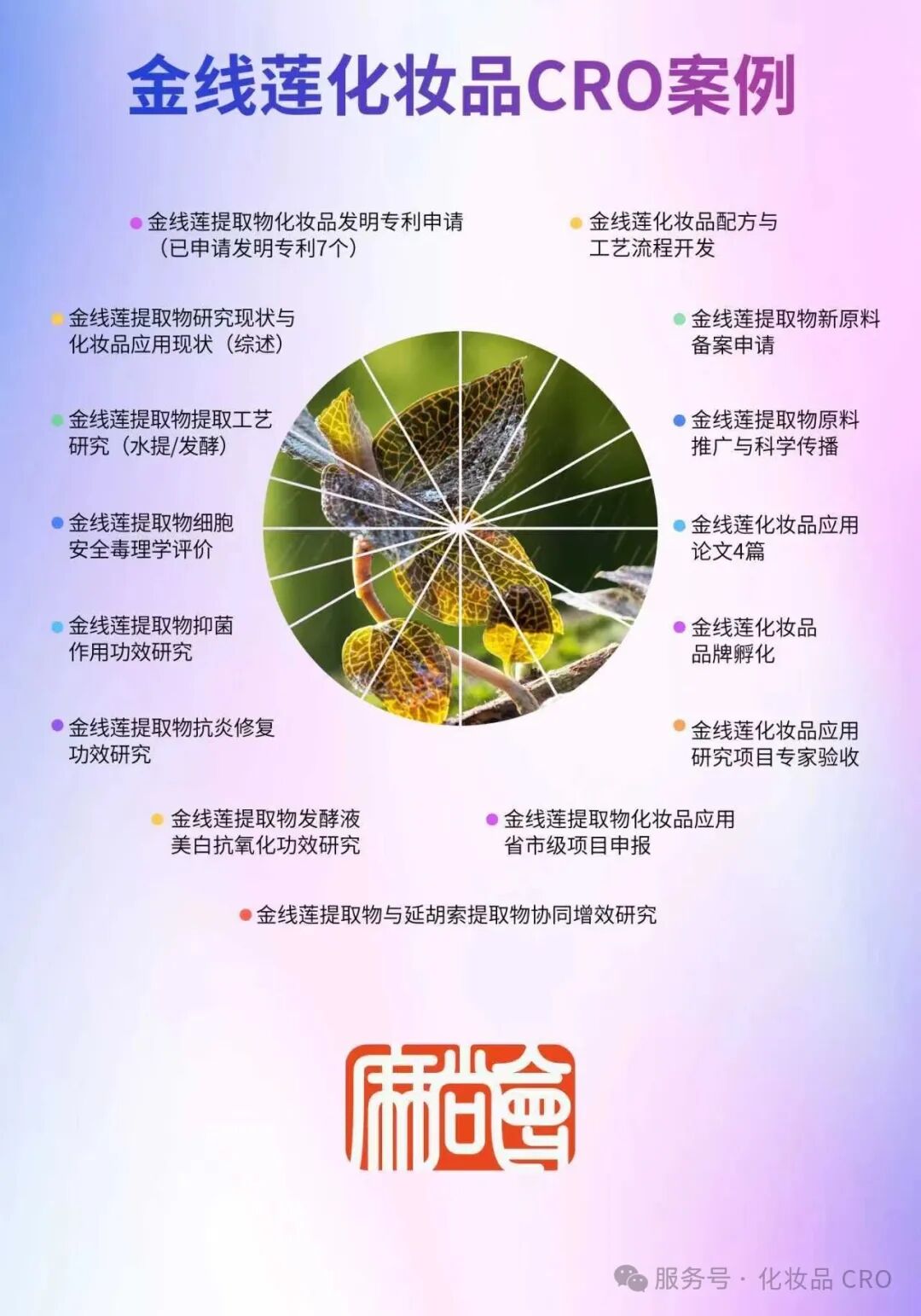 麻尚会化妆品CRO在首席科学家、中南大学二级教授杨占红博导和公司创始人、资深化妆品研发专家陈来成先生带领下,多次组织团队开展金线莲种植溯源、金线莲提取物深加工提取物、金线莲化妆品应用,通过近四年的科研创新,获得十几项科研成果,并备案成功金线莲提取物新原料,解决了金线莲化妆品开发、生产、营销料体,也为金线莲产业发展找到新的方向!